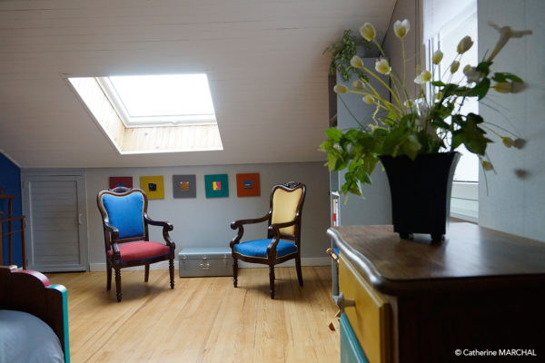 D’une superficie de 28 m2, la chambre d’hôtes occupe tout l’espace privé du 2ème étage de la maison.